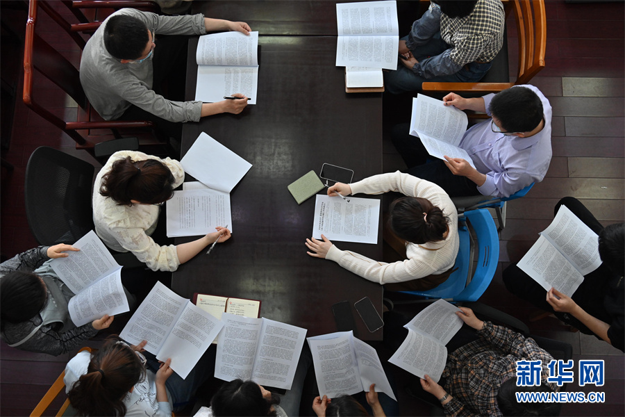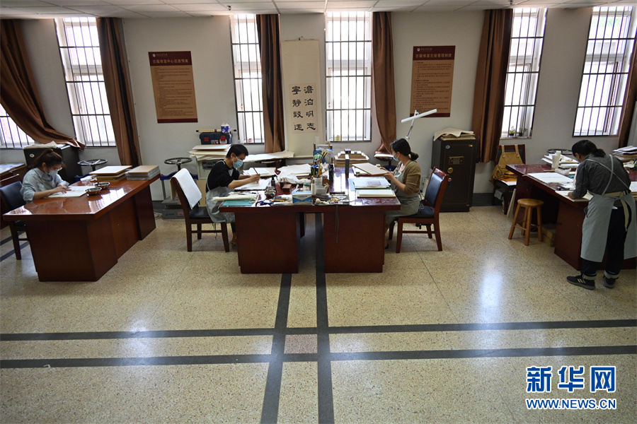 4月24日,安徽省图书馆古籍保护中心年轻的“古籍医生”正在集体学习。新华网发(杨晓原 摄)