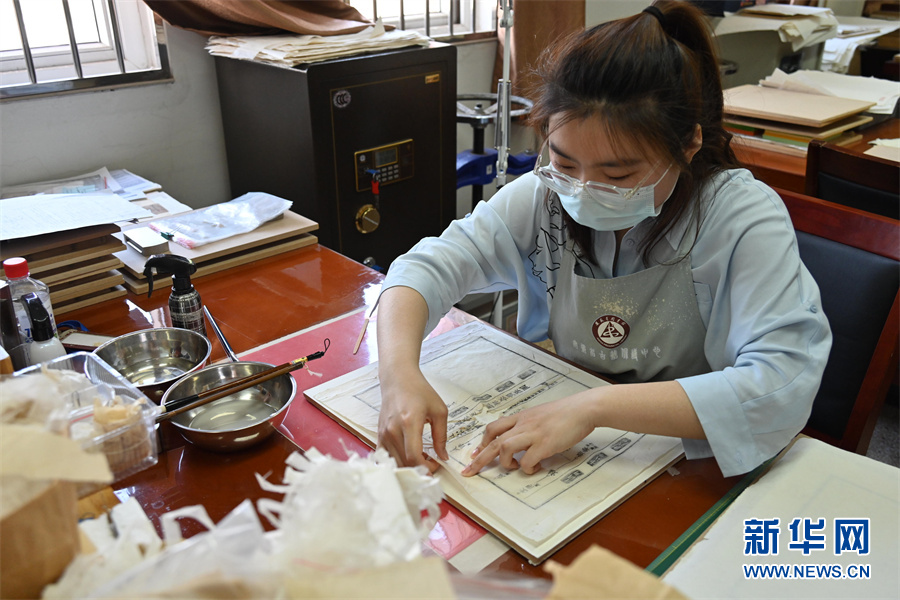 新华网合肥4月28日电(周雨濛)走进位于安徽省图书馆的国家级古籍修复技艺传习中心安徽传习所,空气里弥漫着浓浓的书卷气。这里就是蒋云和四位同事工作的地方,这群80后、90后的年轻人正在挑起古籍修复工作的大梁。